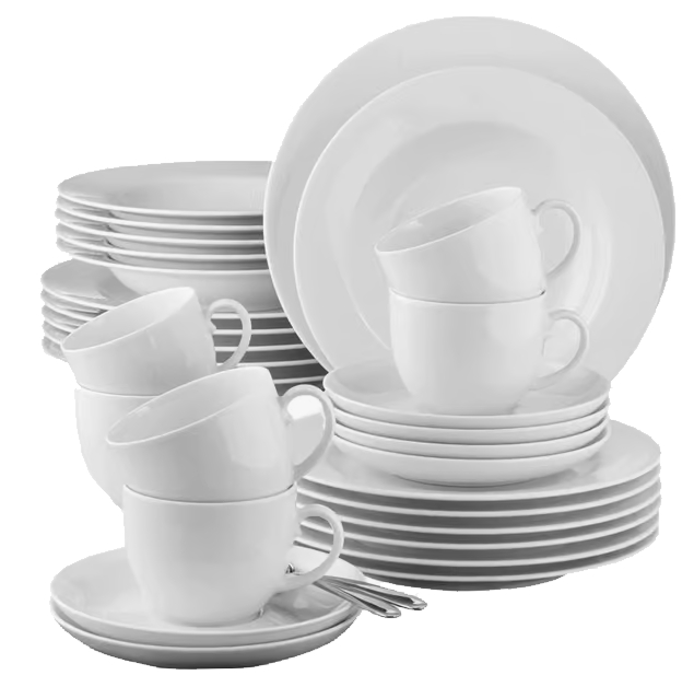Inhalt: 6 Kaffeegedecke, 6 Frühstücksteller, 6 Suppenteller, 6 Speiseteller